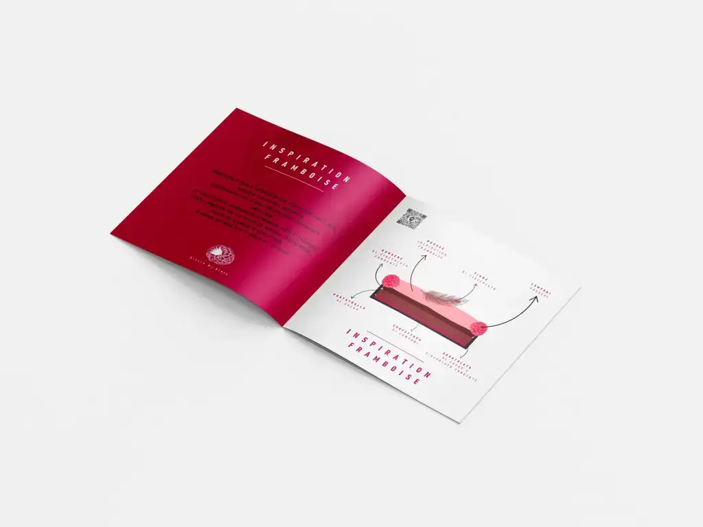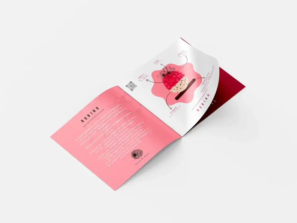 Le brochures ideate e sviluppate per due progetti gastronomici di Silvia Di Gioia parlano attraverso le scelte grafiche ed i supporti cartacei della sua passione per la pasticceria tradizionale ma con un occhio attento e curioso alle nuove tendenze con l’utilizzo di stampi in silicone, la ricerca per l’abbinamento di ingredienti poco conosciuti e glasse con colori accesi.