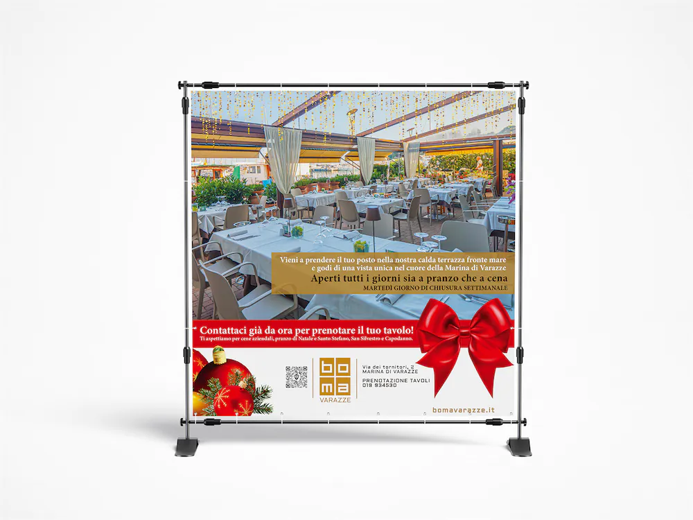 La nostra partnership ventennale con Boma Varazze ci ha visto impegnati in una vasta gamma di progetti grafici e di comunicazione. Dalla creazione di materiale promozionale per eventi speciali alla gestione della loro presenza online, abbiamo supportato le diverse esigenze del ristorante con creatività e professionalità, contribuendo alla loro solida reputazione nel tempo.